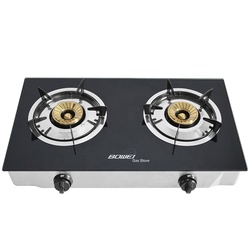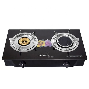 Cocina de Gas de vidrio templado de dos quemadores Big Flame, uso doméstico y comercial, gamas de Gas de marca personalizadas, electrodoméstico de cocina