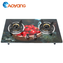 Personalización de diseño 3D, 2 quemadores, vidrio templado grueso integrado en el hogar, cocina de fácil limpieza/estufa de Gas