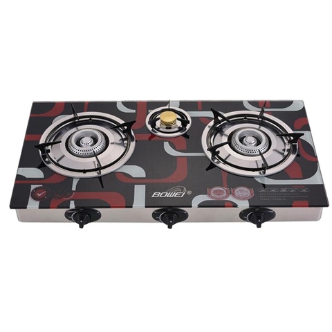 Buen precio cocina principal vidrio estufa de gas de tres quemadores mesa de vidrio cocinas estufa de gas